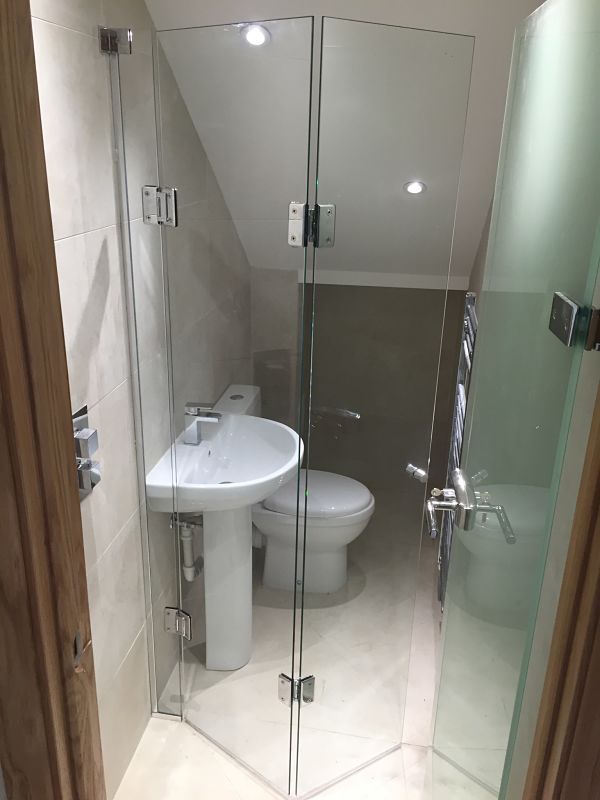 Our made to measure shower doors and enclosures are uniquely designed and built to your requirements and application, as standard they are constructed to be as frameless as possible with 10mm toughened safety glass and the highest quality hinges and fittings. We use minimal hardware and whilst seals are employed between the door and the wall or floor, we rarely fit them between the door and adjacent panel, making for the cleanest frameless look, this is made possible by manufacturing to exacting tolerances, the gap between a door and fixed panel is just 1mm, too small for water to escape.